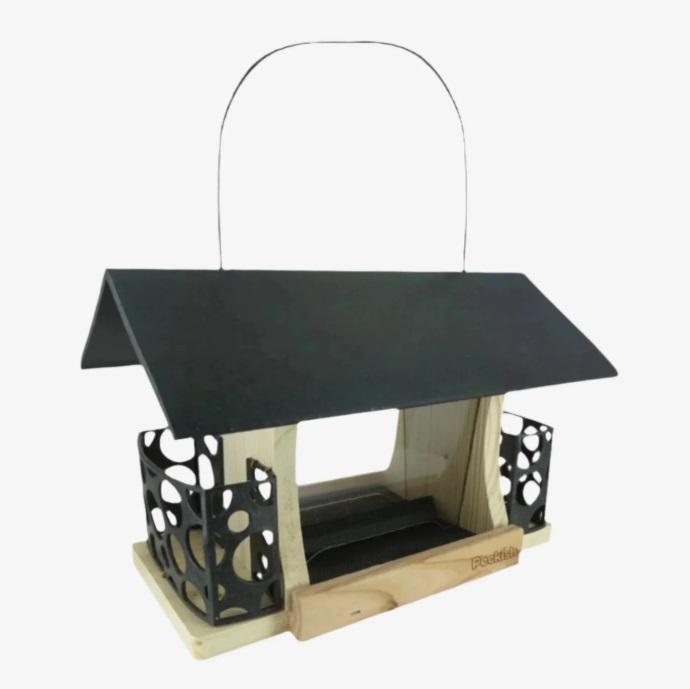 The slate-effect roof and suet cake mesh holder are made from 100% recyclable materials, emphasising our commitment to the environment. Designed to hold approximately 700g of seed and 2 suet cakes, this feeder attracts a wide variety of bird species, bringing nature closer to your home.